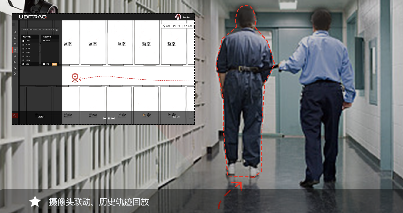 全跡科技監獄高精度定位管理系統使用UWB室內定位技術,通過在監所區域安裝定位基站,為犯人和獄警佩戴定位標簽的形式,實現人員精準實時定位。能夠隨時掌握人員在監所中的位置、活動軌跡以及監所各區域人員分布情況等,系統后臺可以設置禁區入侵、脫離監管報警等并有視頻聯動功能,便被動監管為主動監管。系統支持全天候動態點名,對犯人進行24小時位置監控和軌跡跟蹤,使監獄管理工作更加智能化。