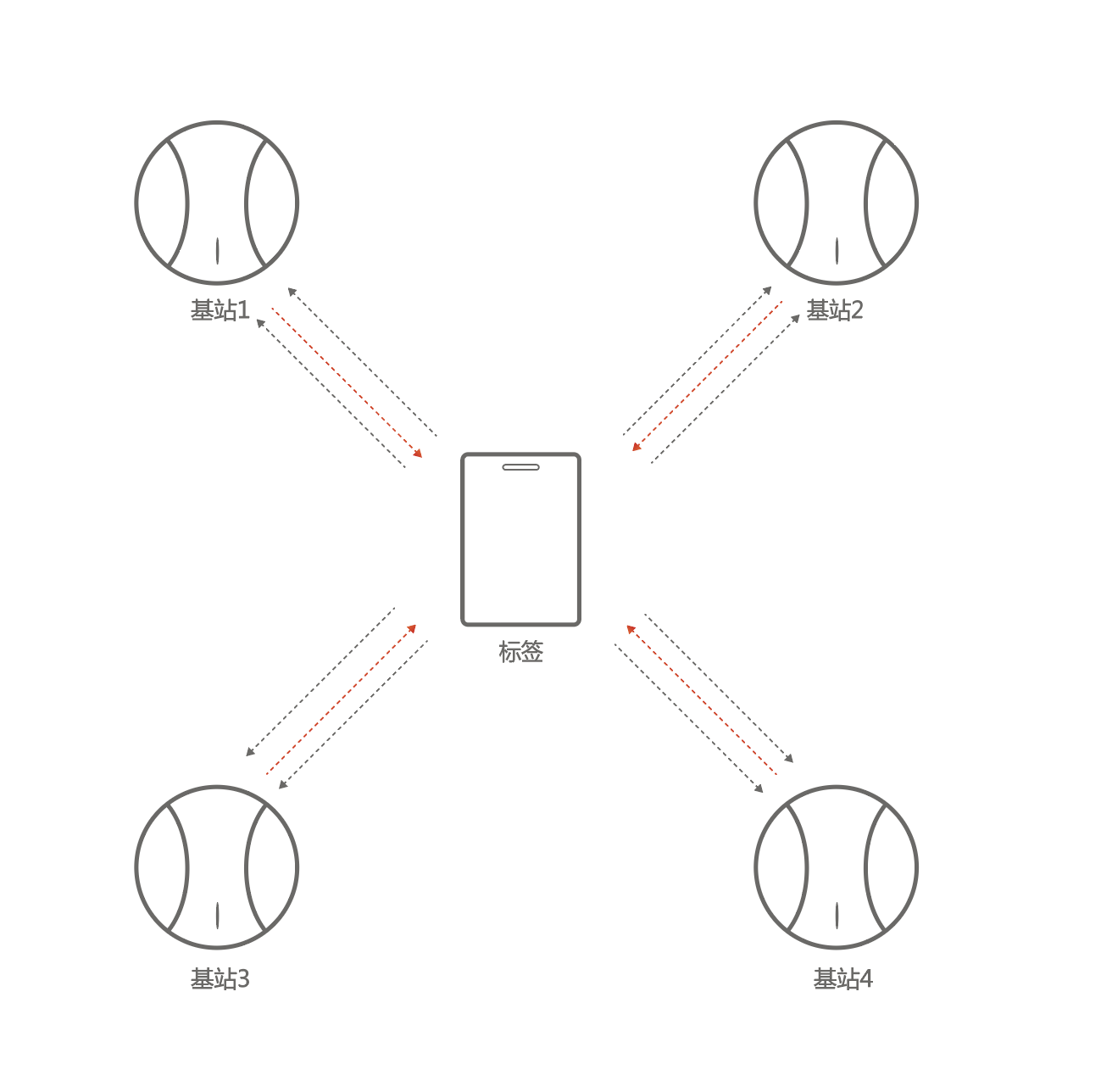 到達時間差法(Time Difference Of Arrival, TDOA)定位的原理是測量出兩個不同基站與移動目標之間的到達時間的差值,乘以速度就可得出一個固定的距離差值。根據移動位置到兩個基站的距離差能建立唯一的一條雙曲線,然后憑借多基站建立雙曲線方程組求解獲得移動目標的坐標。