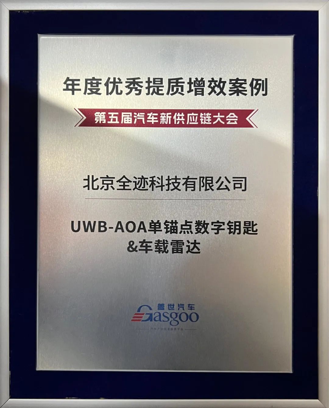 全跡科技UWB-AOA單錨點數(shù)字鑰匙&車載雷達獲評蓋世第五屆汽車新供應(yīng)鏈大會“年度優(yōu)秀提質(zhì)增效案例”。