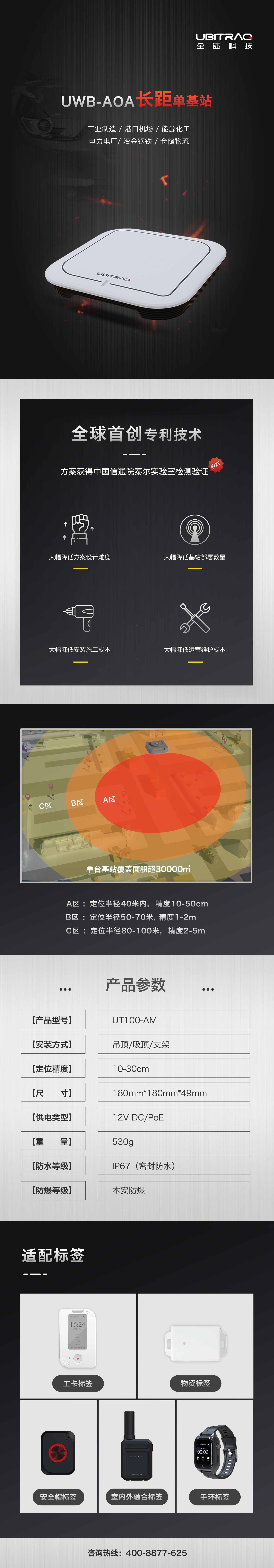 全跡科技借鑒相控陣雷達技術,測角+測距實現單基站精準定位,產品性能得到中國信通院泰爾實驗室檢測驗證。